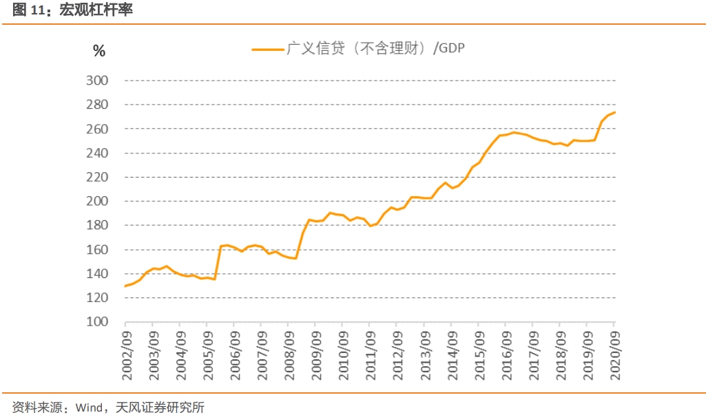 三季度报告央行指出,此前在应对疫情和支持经济复苏过程中逆周期调节力度有所加大,宏观杠杆率出现阶段性上升是可以接受的,但强调未来要“处理好内外部均衡和长短期关系,尽可能长时间实施正常货币政策,保持宏观杠杆率基本稳定”。这也意味着明年政策重心向宏观稳杠杆转变,并且不会出现像2017-2018年的去杠杆局面。