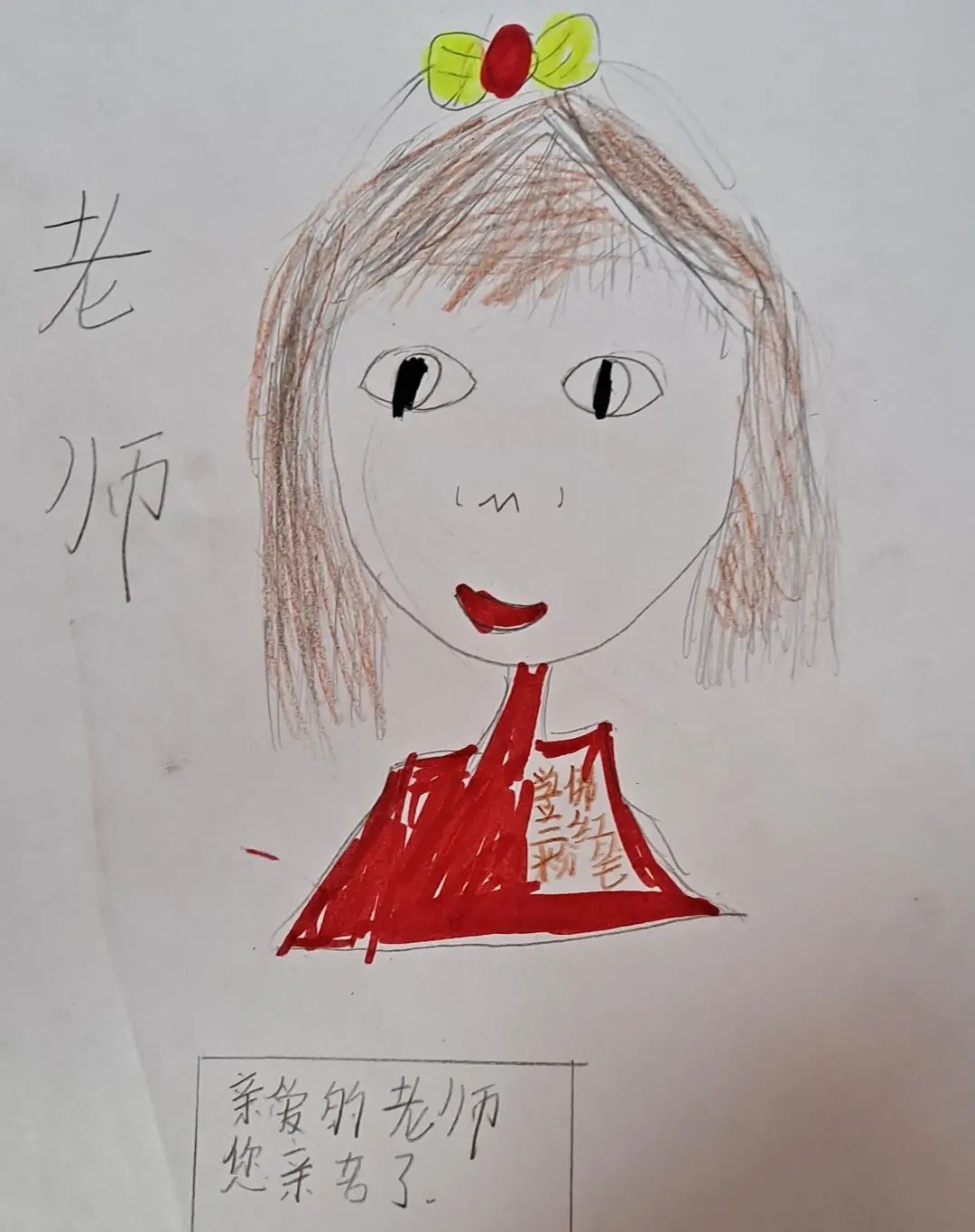 尽管同学们的绘画和笔迹非常稚嫩,连“辛苦”都写成了“亲苦”,但真挚的感谢还是让徐老师心头一热。