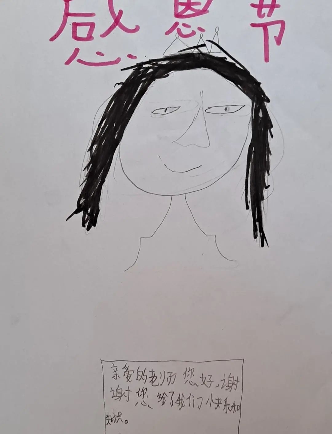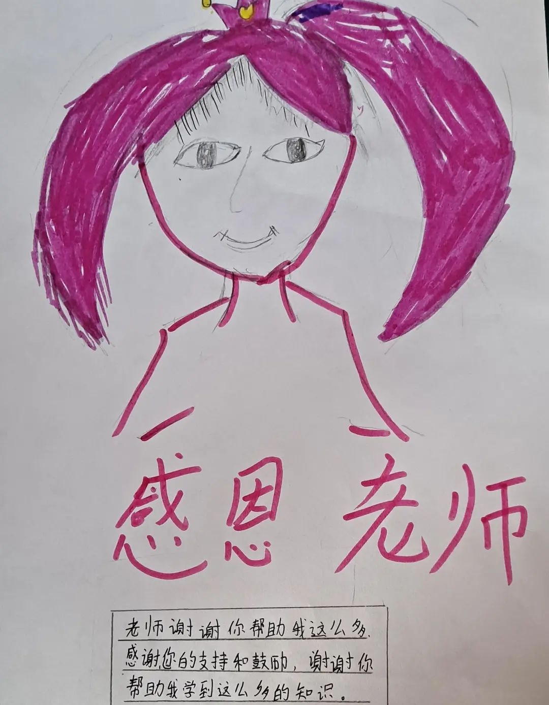 有同学感谢了爸爸妈妈和爷爷奶奶,有同学感谢了朋友和老师,还有几位同学并没有急着下笔去画,而是趴在桌子上抬着头,盯着老师看。下课时,那几位同学将自己的画送给了老师,徐老师才发现,同学们画的最想感谢的人是自己。