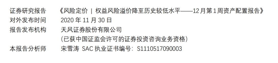 风险定价 | 权益风险溢价降至历史较低水平(天风宏观宋雪涛)