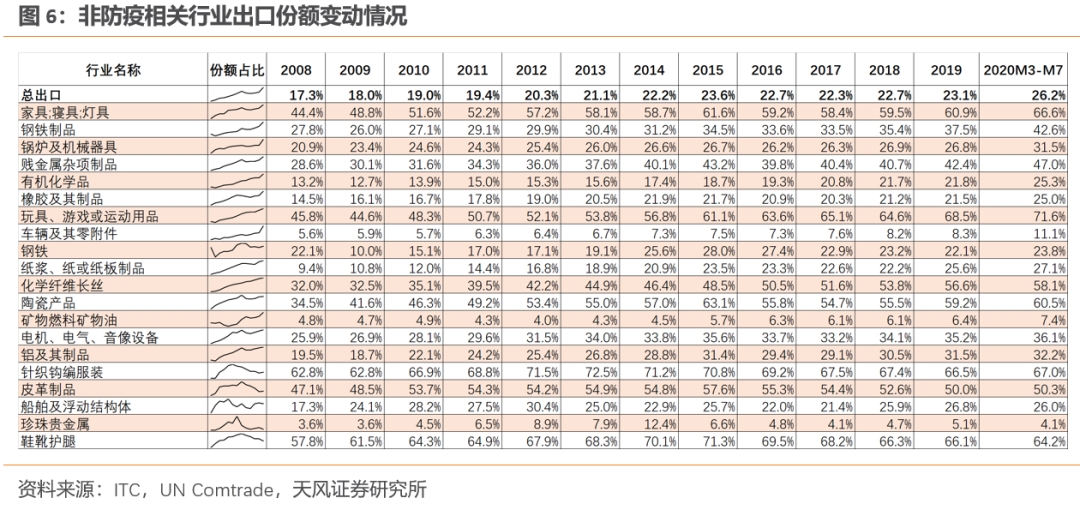 三、哪些行业的出口份额会在疫情后永久性提升?