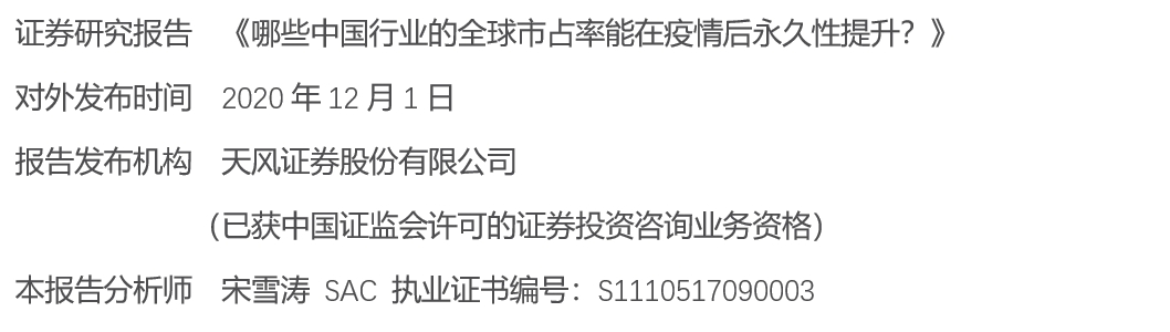 疫情对中国制造的全球市占率提升:暂时性vs永久性(天风宏观宋雪涛)
