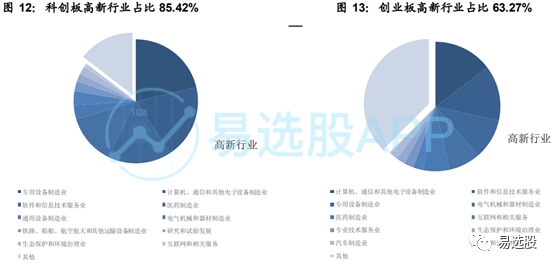 主板中,计算机、电子、通信、信息技术、电气、生物医药、汽车、互联网等高新技术行业企业占比仅为 28.52%,传统行业占据主导地位,而在实行注册制的科创板和创业板下,高新行业分别占85.42%和 63.27%,注册制给予更多新兴行业优质企业上市机会,以资本支持助力其快速成长。我国新兴产业有望受益于注册制的全面推行进入新的发展阶段。