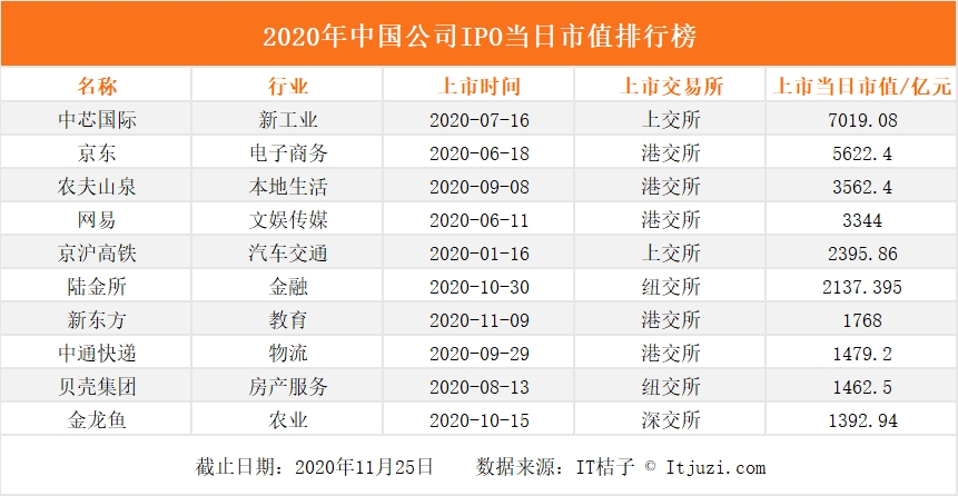 在接近 2020 年末时,IT 桔子根据数据记录盘点一下 2020 年中国公司 IPO 情况。