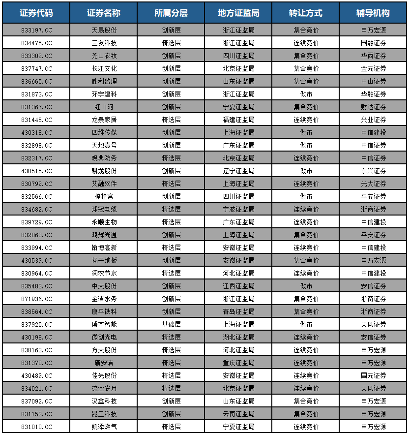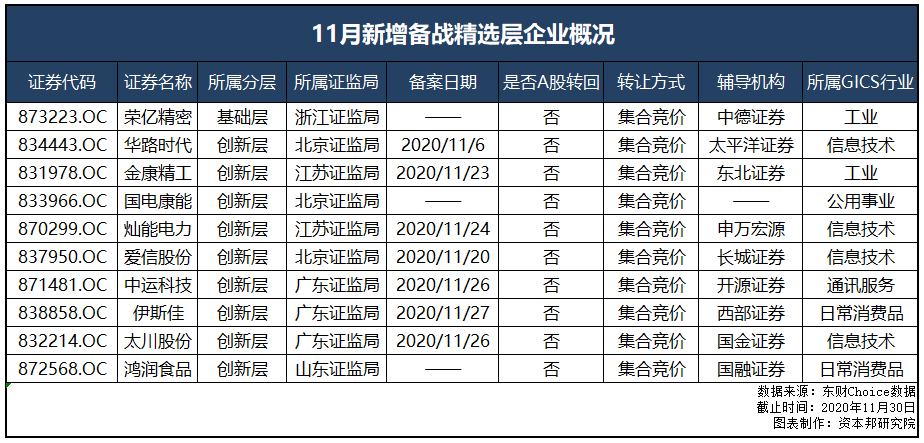 03 精选层11月份具体情况: