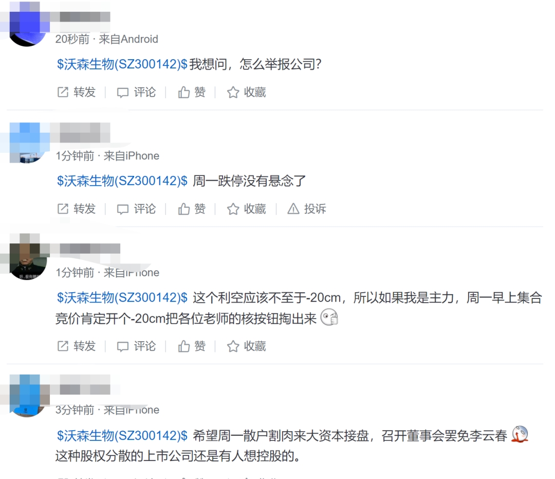 事实上,不仅机构投资人愤怒,社交平台上,股民们也炸了,纷纷表示:周一要跌停。