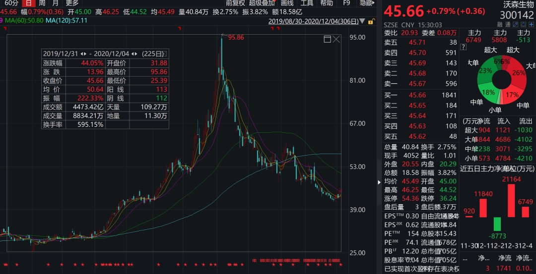 回看沃森生物的股价,虽说今年是医药的大年,沃森作为疫苗股,也今年以来整体涨幅超40%。但自8月6日突破95元创出历史新高之后,沃森便陷入跌跌不休的境地。截至12月4日收盘,沃森的股价较8月的高点,已腰斩。最新市值为705亿元。