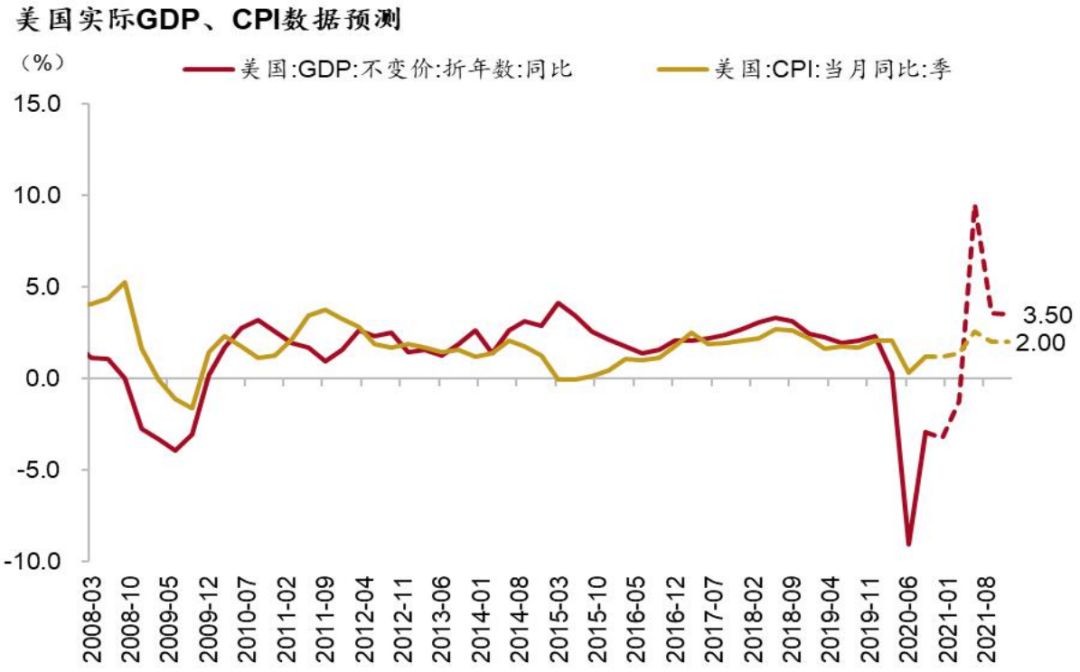 我们判断美债10年期利率在2021年的中枢为1%-1.1%左右,交易区间推算为0.7%-1.5%之间。