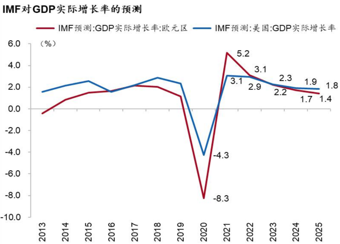 其次,在美国经济的相对强弱方面。从IMF的预测来看,欧元区2021年的GDP实际增长率高于美国,这将对美元构成压制。但需要留意的是,欧元区经济呈现出更强的恢复弹性有一部分因素来源于低基数效应,如果我们抛掉低基数的影响,预计美国经济仍能够以相对更快的速度恢复至疫前水平,美元因货币超发导致的贬值不一定能够持续太长时间。此外,从长周期来看,我们也很难得出“欧洲经济将长期超越美国”的结论,也很难支持美元已经进入熊市周期的论调。