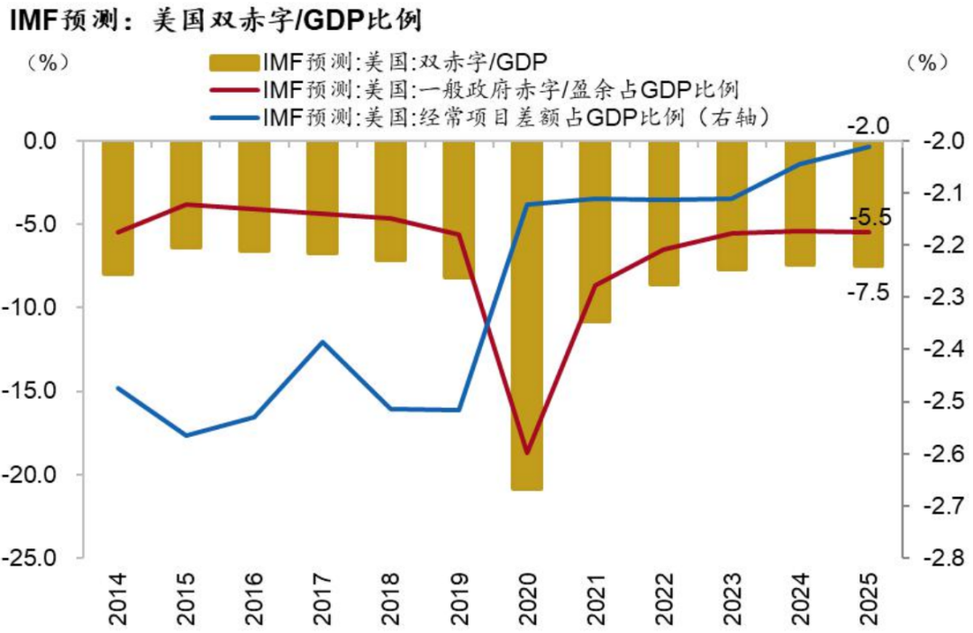 最后,在美国双赤字方面。由于今年“新冠衰退”席卷全球,各国纷纷推出巨量的财政急救包,财政政策的“凯恩斯主义”再度兴起,导致全球公共债务快速积累。以IMF的预测数据来看,美国双赤字规模/GDP占比在2020年可达21%的极高水平,对美元形成拖累,但2021年将显著降至11%,从更长的周期观察,赤字对美元的拖累比较短暂。