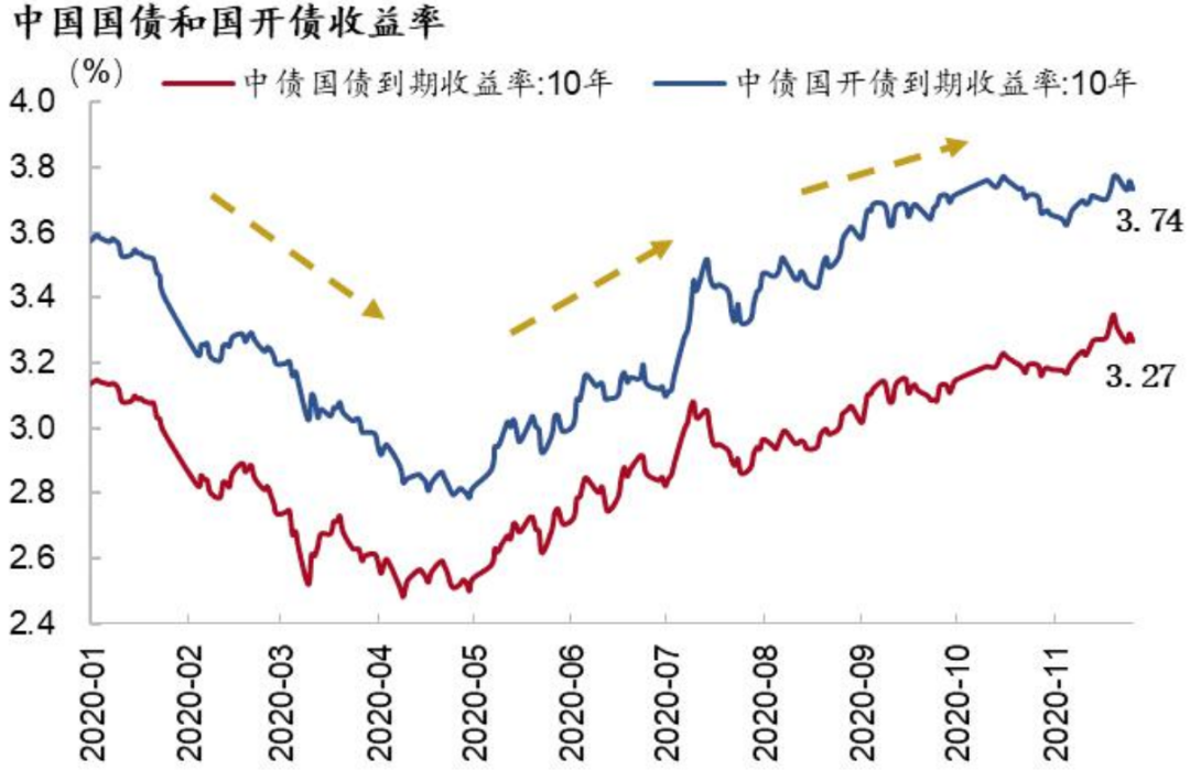 人民币:首先,由于我们判断弱美元的形态在未来一段时间内将延续,因此人民币双边汇率预计仍有升值压力,中枢水平相较2020年来说或将进一步提升;其次,在资本项目端,相比于美联储的“无下限”放水,我国的宏观刺激力度远小于西方发达国家,常规货币政策空间仍然充足,中美息差偏厚,在追逐高收益资产的驱动下,资金或有望加速流入国内资本市场,这也将从资本账户端对汇率产生拉动力量,不过需要留意节奏上可能会出现由强转弱的切换;最后,拜登获选成为美国总统,在对华政策方面,虽然其并未改变对中国的强硬态度,但预计其在单边关税的态度上相较特朗普会有所缓和,中美再次掀起贸易摩擦的概率降低,人民币汇率面临的外围冲击将边际减弱。
