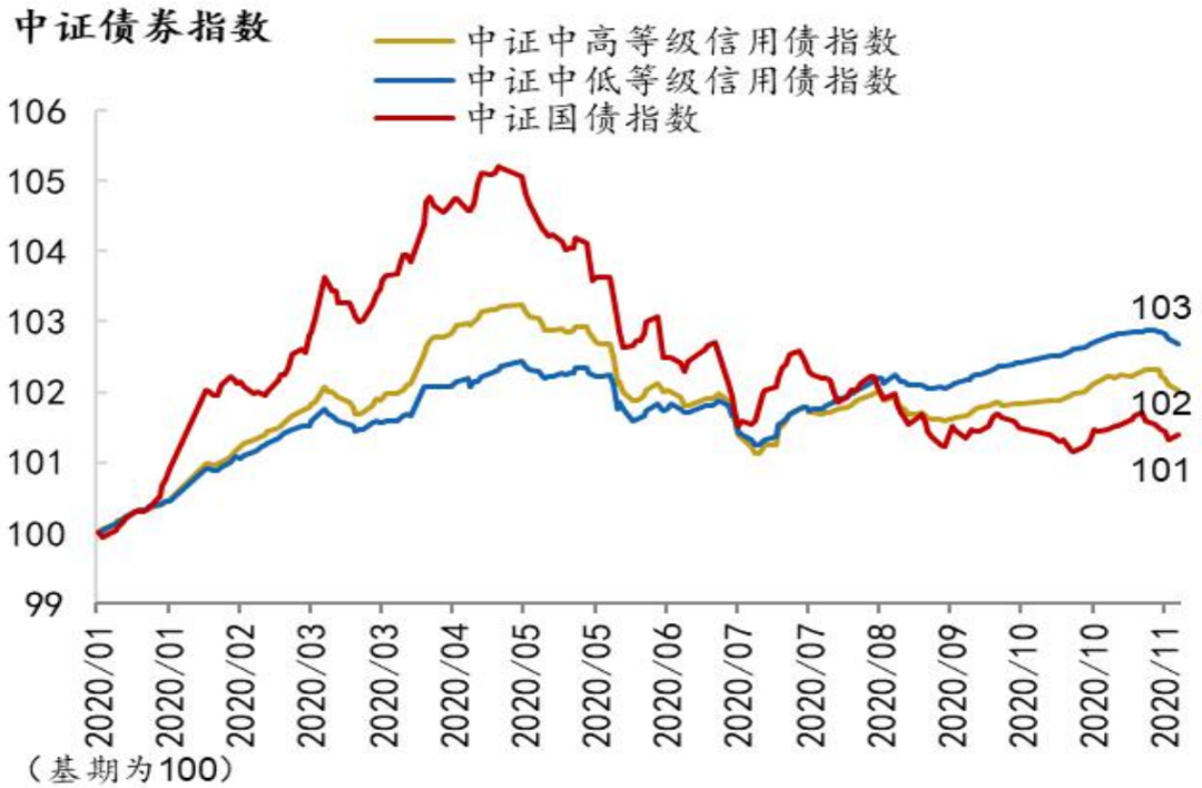 从收益表现上看,2020年上半年,利率债>中高等级信用债>中低等级信用债;下半年,中低等级信用债>中高等级信用债>利率债,明年一季度或延续。待明年经济寻找新中枢时,资产收益在不同品种间将再平衡,收益表现排序或切换成利率债>中高等级信用债>中低等级信用债。