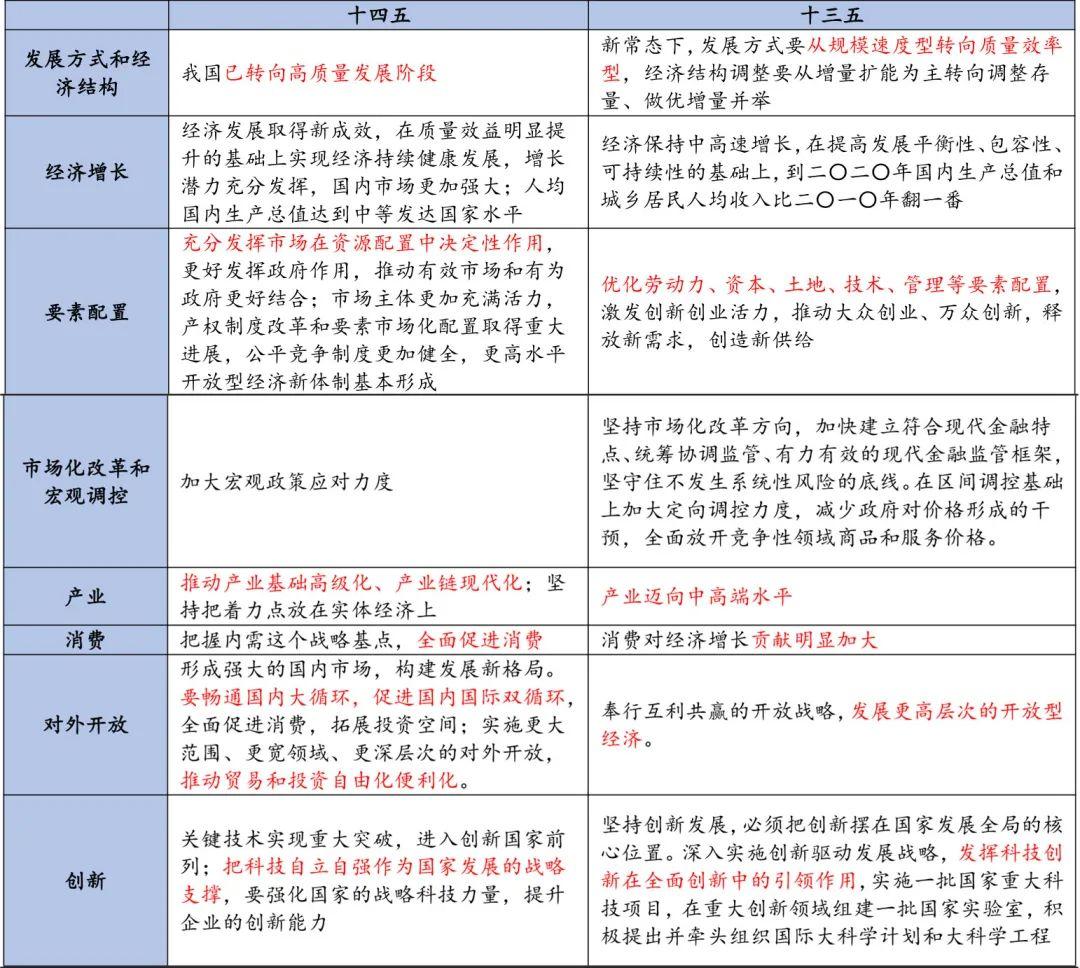 表3:《十四五规划》与《十三五规划》对相关要点的提法