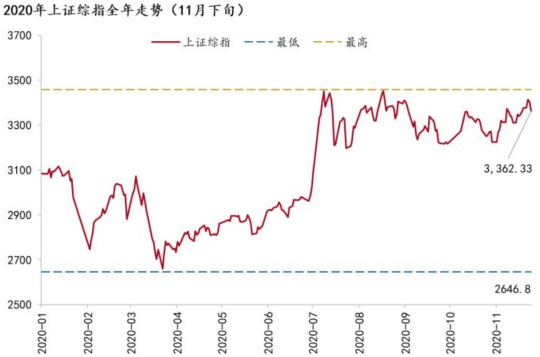 回首股市鼠年表现,我们既历经了疫情冲击下A股的大幅度调整,也见证了股市在资本市场改革开放、疫后经济逐步修复的企稳向上。截至11月上旬,以上证综合指数为代表,股市全年运行平稳,全年涨幅7%,实际运行区间[2647,3459],符合我们在2020年年初的年度展望中,全年区间[2700,3500]的预测。