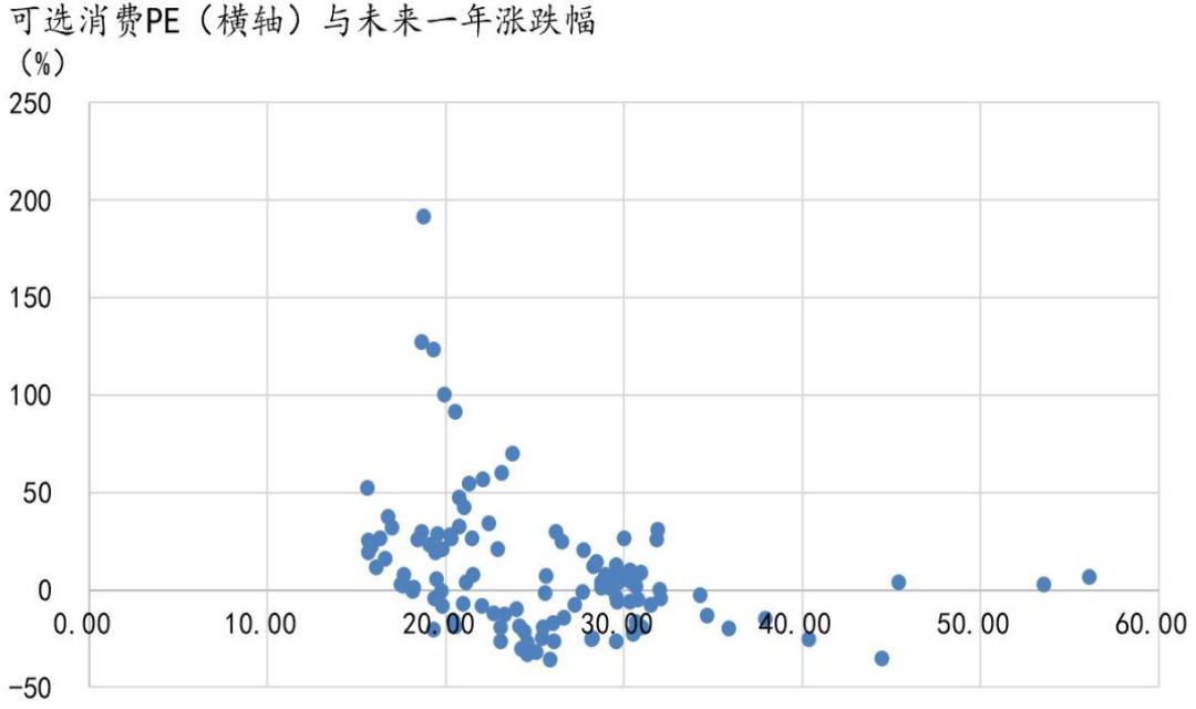此外需要注意的是,可选消费在当前估值水平上对应着未来负收益区间,但这并不代表该类行业没有机会。酒店、航空、文娱等行业在2020年初疫情的冲击与随后的出行限制下,盈利较前期大幅回落,但随着疫情态势得到控制,旅游、航空等行业逐步恢复,市场对后市预期相对乐观,当前的高估主要源自分母端的大幅回落,随着疫情控制成效显著以及后市盈利的修复,未来有望持续向好。