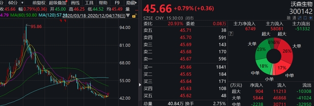 今年是医药的大年,沃森作为疫苗股,今年至今整体涨幅40.8%。但自8月6日突破95元创出历史新高之后,沃森便开始跌跌不休。截至12月4日收盘,沃森的股价较8月的高点,已腰斩。