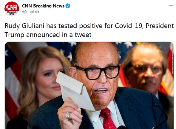 据环球网,美国有线新闻网(CNN)消息称,美国总统特朗普在推特上表示,其私人律师朱利安尼新冠病毒检测结果呈阳性。