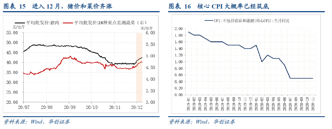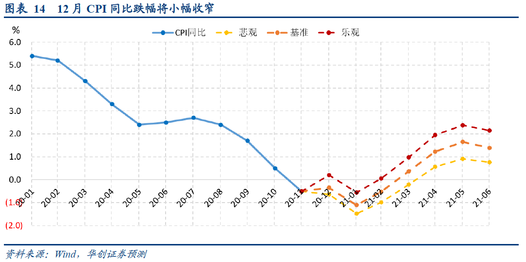 我们认为,明年CPI全年前高后低,通胀呈温和回升趋势,中性情形下CPI同比全年中枢在1.4%左右,不会对货币政策形成掣肘。