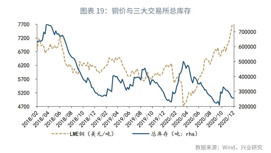 需求方面,下游消费总体好于市场预期,国内库存持续回落,上期所铜库存目前不足10万吨,现货升水维持高位。11月铜材加工企业反映订单改善,精铜制杆、铜管企业开工率环比、同比均有不同程度地回升,SMM估计11月我国铜材加工企业平均开工率为74.91%,环比增长1.67个百分点,同比增长3.2个百分点。终端消费领域,汽车行业延续强劲状态,乘联会预计11月汽车日均零售环比增3%,同比增长5%。家电出口保持旺盛,空调产销好于季节性表现。脱碳和电气化是未来金属市场的主要驱动力。上周SMM有色金属年会上对铜普遍看好,因中国和欧洲都承诺减排目标,清洁能源及电动车大发展将极大提升铜、铝等需求,但缺乏大型矿山投产,供应增量受限,市场维持紧平衡。铜价在经历半个月的上涨后,短期上行阻力加大,但由于美国、日本等国家都计划实施刺激方案,宽松流动性的基本格局不变且国内消费好于预期,铜价仍中期旧具备上涨动力。