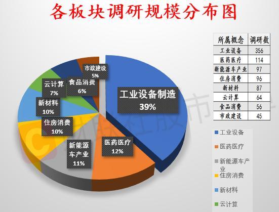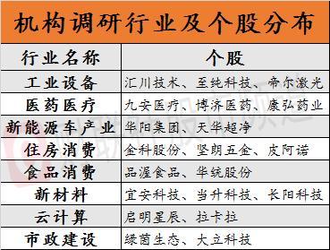 除了工业设备制造、医药医疗等领域被机构光顾外,在新能源车产业、大消费、新材料、云计算等领域,机构也均有关注。近期机构调研行业分布如下图:
