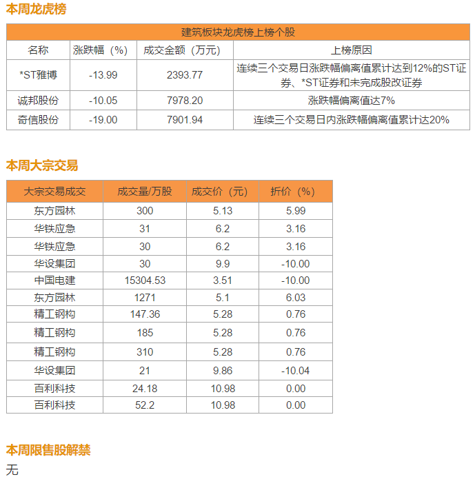 5、因此,未来建筑板块有望呈现多点开花,重点推荐以下板块相关标的:1)高景气度的装配式建筑,推荐预制PC龙头远大住工(H股)、筑友智造科技(H股),以及精工钢构、鸿路钢构、富煌钢构等相关钢结构标的;2)专业工程,推荐中国化学、中钢国际、中材国际等标的,建议关注中国中冶;3)对外工程,推荐海外业务占比较高的中国交建,关注中国电建等标的。4)另外,行业集中度的提升利于细分龙头公司,推荐设计行业龙头华设集团、城建设计和苏交科、装饰行业龙头金螳螂、建筑央企中国铁建、中国建筑、中国建筑国际、中国中铁等标的。