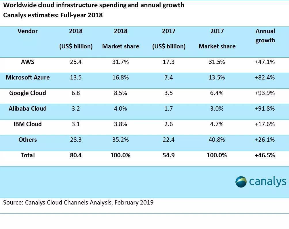 此外,IBM还先后收购了高速传输技术公司Aspera、数据库公司Cloudant、云服务解决方案提供商Bluewolf等云计算相关企业。即便如此,随着亚马逊、微软、谷歌等巨头疯狂拓展各自云计算业务,Softlayer优势很快消失。2016年,IBM被迫放弃了Softlayer品牌。