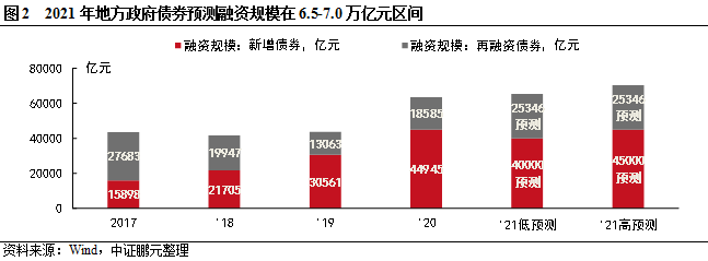 (二)预测2021年地方政府债券融资规模在6.5-7.0万亿元区间