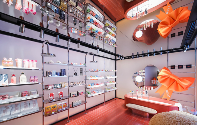 配合潮流品牌,集合店的装修和配色也是颜值经济的网红担当。整体装修风格结合当下年轻人喜欢的色彩和风格,极具视觉感染力,让人秒进色彩斑斓的美妆世界。也正是通过这种与众不同的设计,它们频频成为网红打卡地,让品牌能在社交平台持续发酵。