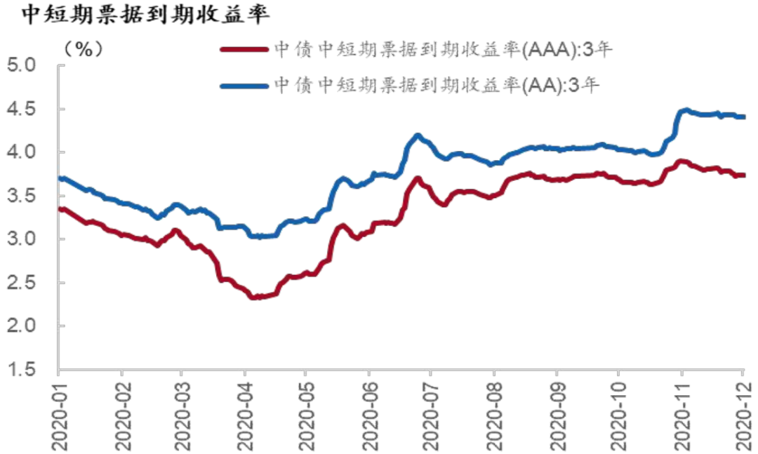 图12:2020年中短期票据利率先下后上