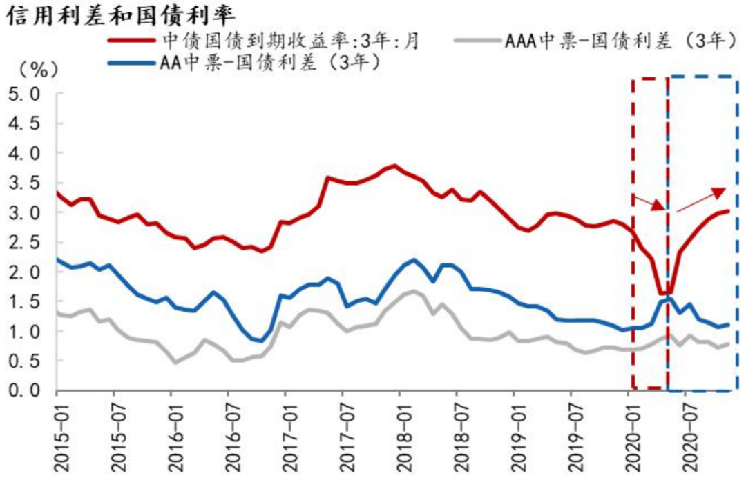 图14:2020年信用利差和国债利率走势