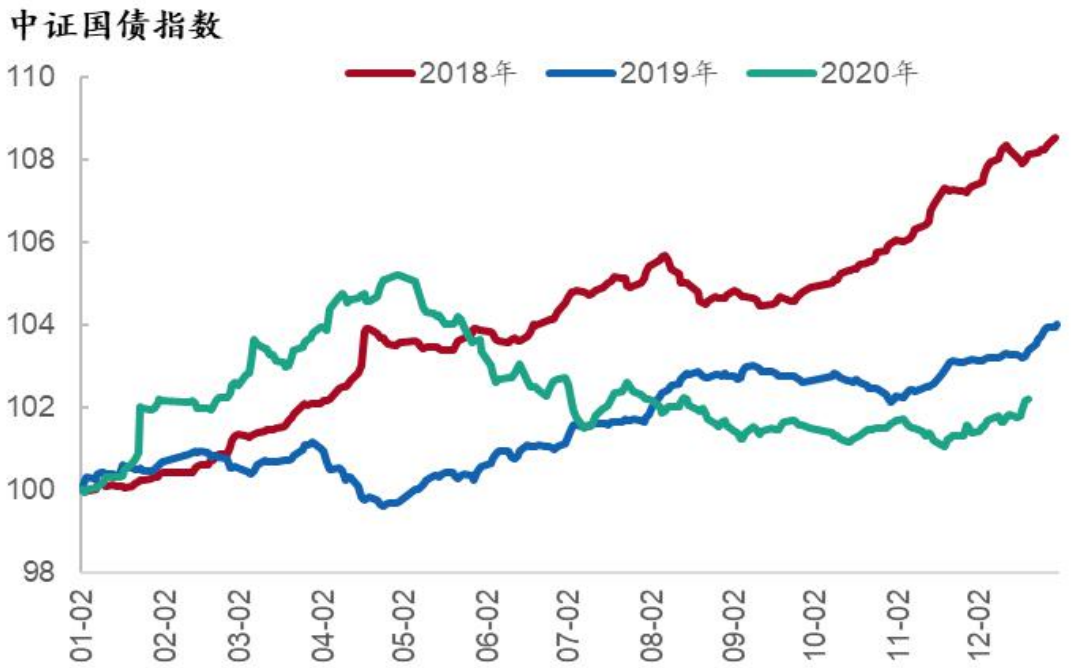 图19:2018-2020年中证国债指数