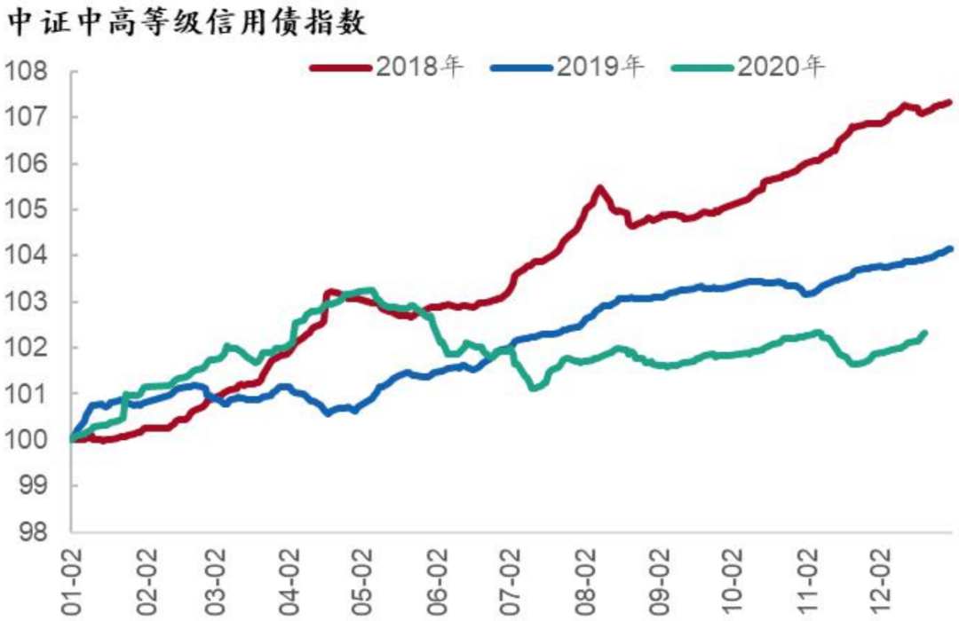 图20:2018-2020年中证中高等级信用债指数