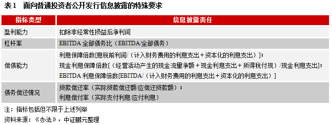 《办法》统一了公司信用类债券发行时的信息披露要求,包括发行阶段披露的文件内容、募集资金、企业内控制度等要求。其中,募集说明书是发行文件中重要的组成部分,《办法》对其编制的格式和内容给出了详细的要求。在募集说明书中,投资者保护机制需要明确披露债券违约事件的定义、触发条件、违约责任、应急事件及债券违约的救济机制和处置程序、不可抗力、弃权、争议解决机制等。同时明确要求企业应当披露涉及债券持有人权益的重要条款的修改、变更机制及生效条件,此要求与持有人会议中“特别议案”的规定相互衔接,以此来提高对投资者权益的保护。(持有人会议相关阅读可参考《债券展期,到底谁说的算》)同时,《办法》对面向普通投资者公开发行债券的信息披露提出特殊要求,除满足募集说明书格式及内容要求一般要求外,还应当采用数据列表方式,提供截至报告期末企业近两年的主要会计数据和财务指标,包括但不限于“扣除非经常性损益后净利润”、“EBITDA全部债务比(EBITDA/全部债务)”、“利息保障倍数[息税前利润/(计入财务费用的利息支出+资本化的利息支出)]”等。通过直观数据比例让普通投资者了解发行人偿债能力情况,有利于降低信息不对称。