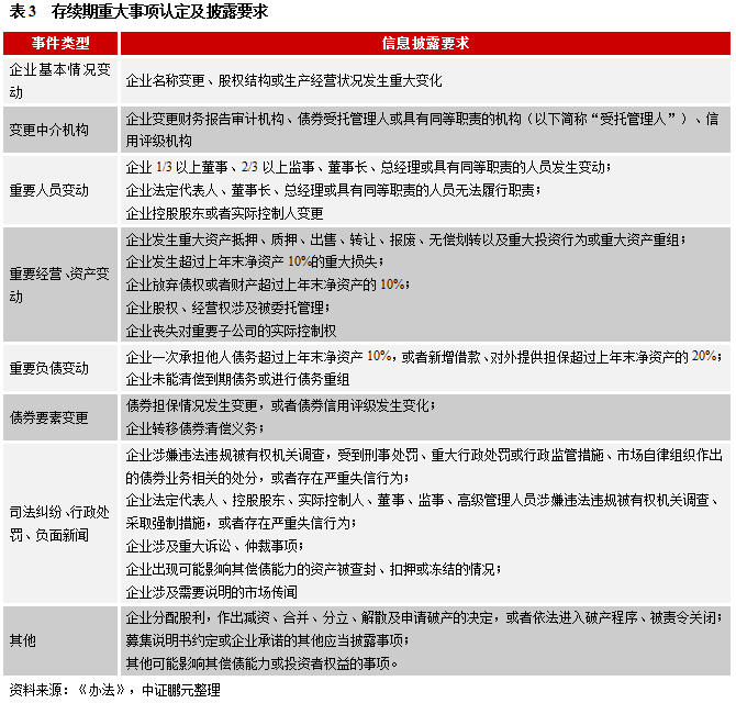 《办法》结合新《证券法》,明确了22项重大事项类型和具体界定标准,要求企业及时披露可能影响偿债能力或投资者权益的重大事项,并说明事项的起因、目前的状态和可能产生的影响。