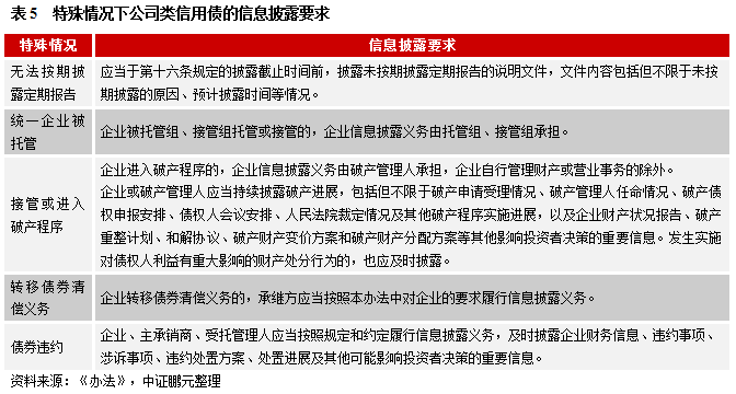 随着违约债券的增加,各类风险场景的暴露,《办法》规范特殊状态下的信息披露要求,包括统一企业被托管、接管或进入破产程序,转移债券清偿义务、债券违约等多种特殊情形。同时,完善信息披露文件更正、变更、豁免的信息披露要求,明确“企业更正已披露信息的,应当及时披露更正公告和更正后的信息披露文件。”