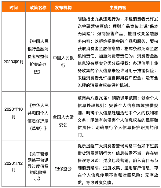 10月,人民银行相关分支机构对部分金融机构侵害消费者金融信息安全行为立案调查,并对其进行警告和处罚。2021年,消费金融行业的消费者信息合规性将提升,信息内部控制机制上将进一步健全,安全技术防范措施将进一步加强。