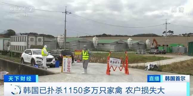 截止到目前,为阻止禽流感疫情蔓延,韩国已经在200多家农场扑杀了1150多万只家禽,并且对事发农场及周边,实施7天到一个月不等的家禽禁运措施。不少农户恐怕将因此遭受较大经济损失。