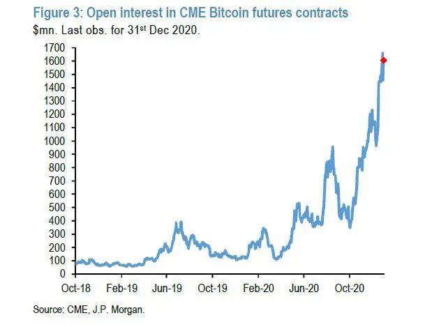 短期来看,比特币的资金流入仍在持续,去年流入比特币的机构资金中,有很大一部分反映了投机者试图抢在其他的机构投资者前面进场。芝加哥商品交易所比特币期货的头寸飙升就是证据之一。
