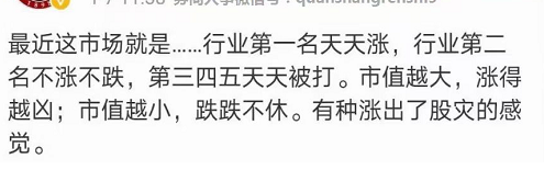 行业龙头“螺旋式上涨”和众多小股票的“落叶式下跌”同时上演。