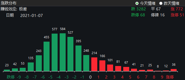 1月7日,772只个股上涨,3282只个股下跌,大盘涨0.71%.