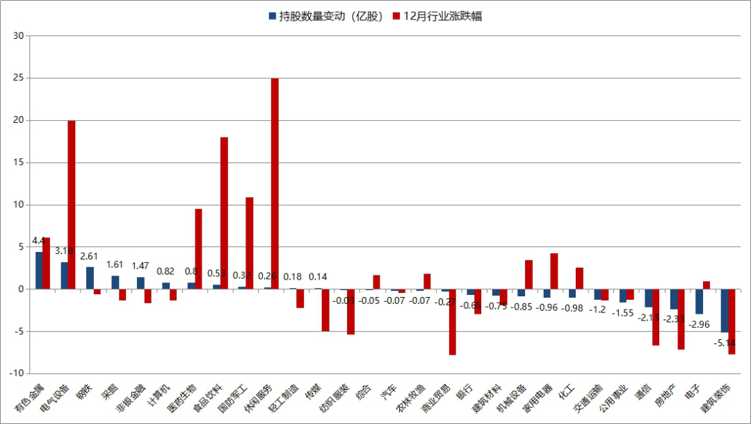 1. 延续11月,有色、钢铁、采掘等顺周期行业获得了北上资金的大幅增持。
