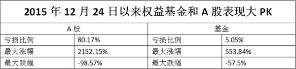 而从基金表现来看,2015年12月24日以来,若算上全部权益基金,纳入统计的1741只基金(各类型分开计算)中,出现亏损的仅88只,也就说差不多有95%左右的基金跑赢了上证指数,显示出公募基金整体投资优势。不过,跌幅最大的基金,期间亏损也超过57%,首尾差异巨大。
