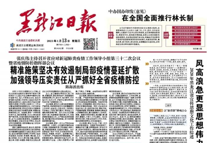据黑龙江日报报道,12日晚,黑龙江召开省应对新冠肺炎疫情工作领导小组第三十二次会议暨省疫情防控指挥部会议。