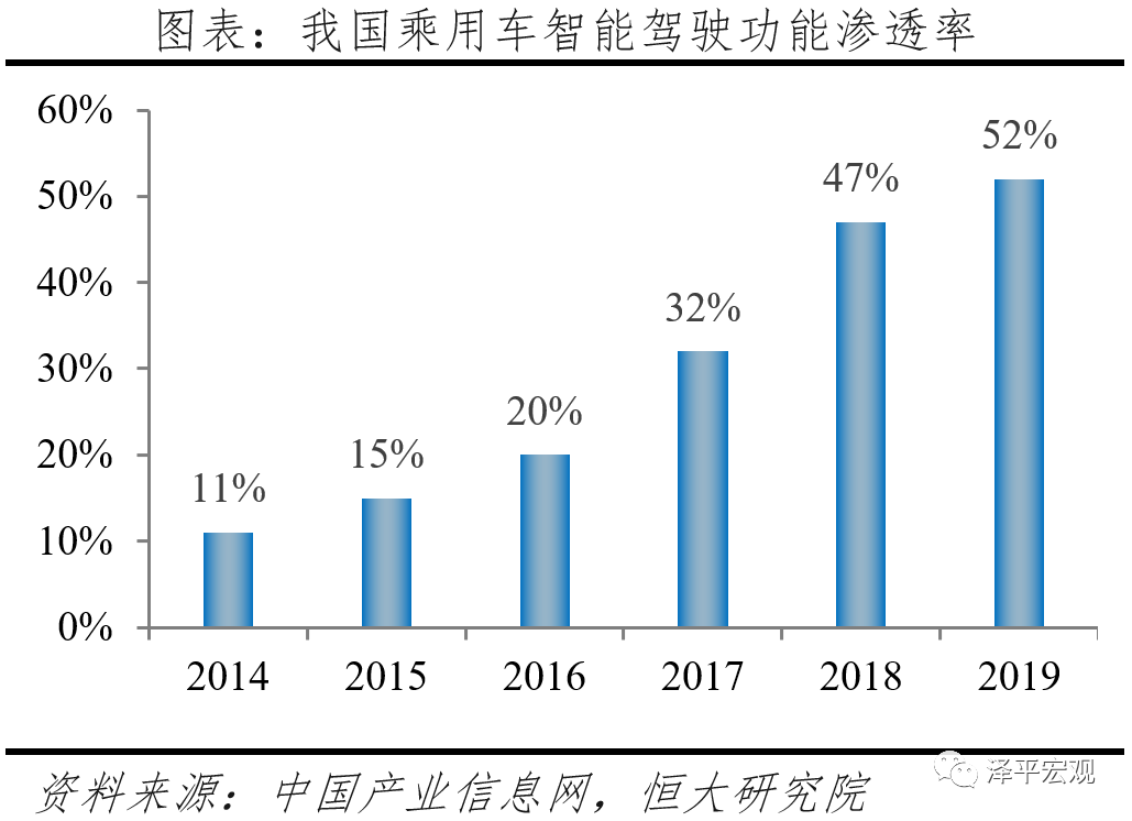5)市场接受度提升:近几年消费者对辅助驾驶如自主泊车等功能接受度不断提升,我国乘用车智能驾驶功能渗透率不断提高。根据中国产业信息网统计,我国乘用车智能驾驶功能渗透率从2014年的11%增加到2019年的52%。