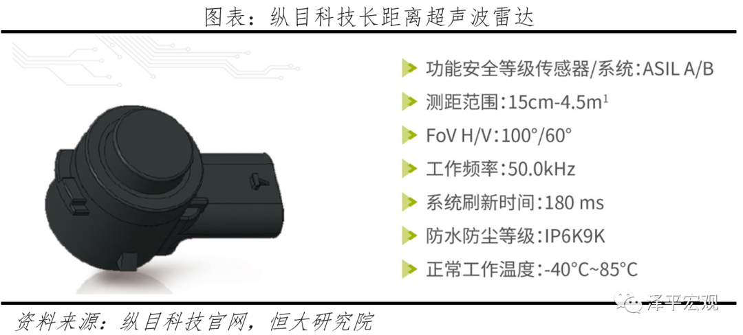 感知系统的缺陷来自于三个方面:1)感知盲点(部分区域、物体无法感知);2)感知辨别度低(感知到物体但是无法识别);3)感知反馈时间长且信号弱(识别到物体,但是无法精准及时反馈)。以感知盲点为例,其有两个主要原因:1)单个传感器受到探测距离和视角的限制,需要多个传感器才能完成360°全景覆盖;2)即使实现360°全覆盖,但是受到光线、雨雪、雾霾、沙尘等恶劣天气造成的感知盲区。以纵目科技产品为例,其超声波雷达测距范围在0.15-4.5m,其探测角度水平角100°、垂直角60°。