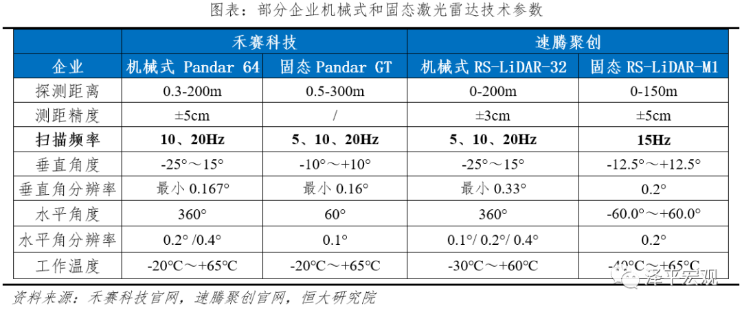OEM放弃机械式激光雷达的原因在于机械式激光雷达很难达到车规级要求。激光雷达按照结构可以分为机械式、半固态、固态三种;其中机械式激光雷达即利用机械机构360°旋转实现扫描的激光雷达,而固态激光雷达即通过阵列干涉或者是mems改变扫描的方向,不需要机械机构的旋转。如下所示,机械式激光雷达扫描频率一般为5、10、20HZ三个档位,按照10Hz计算,也即1个小时旋转3.6万次,按照每天4个小时行程、1年360天计算,一年旋转5184万次;在如此高频率的使用情况下,当前的旋转机械结构完全满足不了车规级5-10年的寿命要求,此外其抗冲击、振动性能也很难通过车规级测试;更何况,实际使用过程中还需要考虑雨雪风沙、酷暑严寒恶劣环境侵蚀。