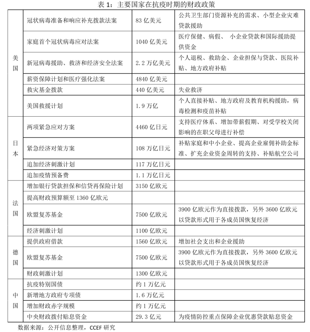 2020年初以来,新冠疫情的蔓延导致部分国家实体经济基本停摆、金融市场剧烈动荡、跨国供应链支离破碎、国际贸易大幅度萎缩。为了减缓疫情冲击,各大经济体先后推出多轮超常规经济救助政策予以应对。从救助方案的具体内容看,各国抗疫时期的经济策旨在支持物资供应,缓解家庭、企业和社会的压力。大量专项补助不仅有助于帮助家庭和企业渡过因疫情期间停工停产带来的收入下滑造成的短期现金流压力,还能防止由此导致的资金链断裂带来的一系列违约风险,有助于防止转化为金融危机。