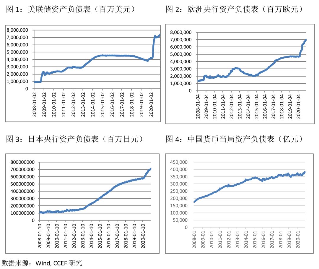 与2008年金融危机相比,2020年各主要经济体(除中国外)为应对疫情而采取的财政刺激与量化宽松幅度更大,央行的扩表速度达到历史新高。且从当前疫情演变和货币与财政政策实走向看,全球性的宽松还将持续。