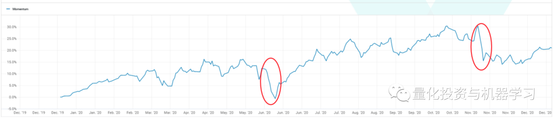 从上表来看,表现最好的是动量因子。除过6月初和11月初至中旬的两次短期下调外,动量因子在今年大部分时间都呈上升趋势。