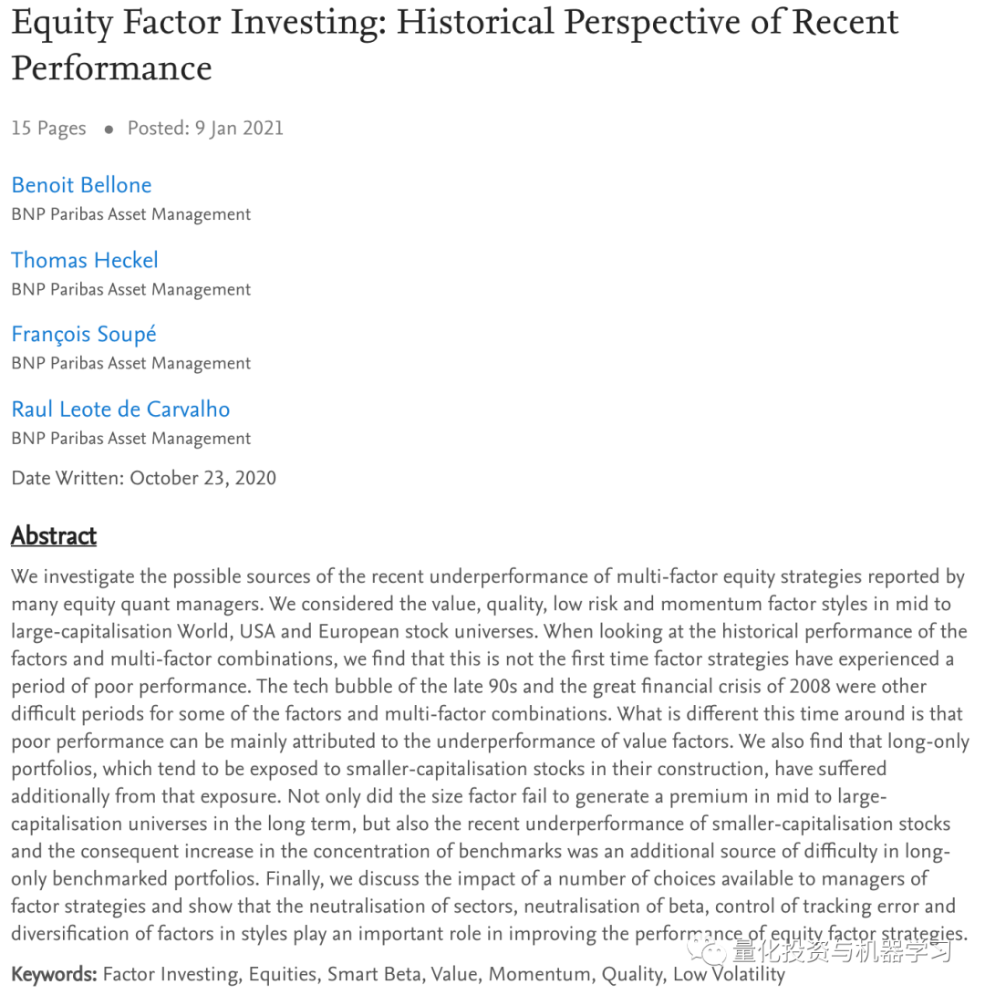 BNP Paribas资管的研究员在最新的一篇论文写到: